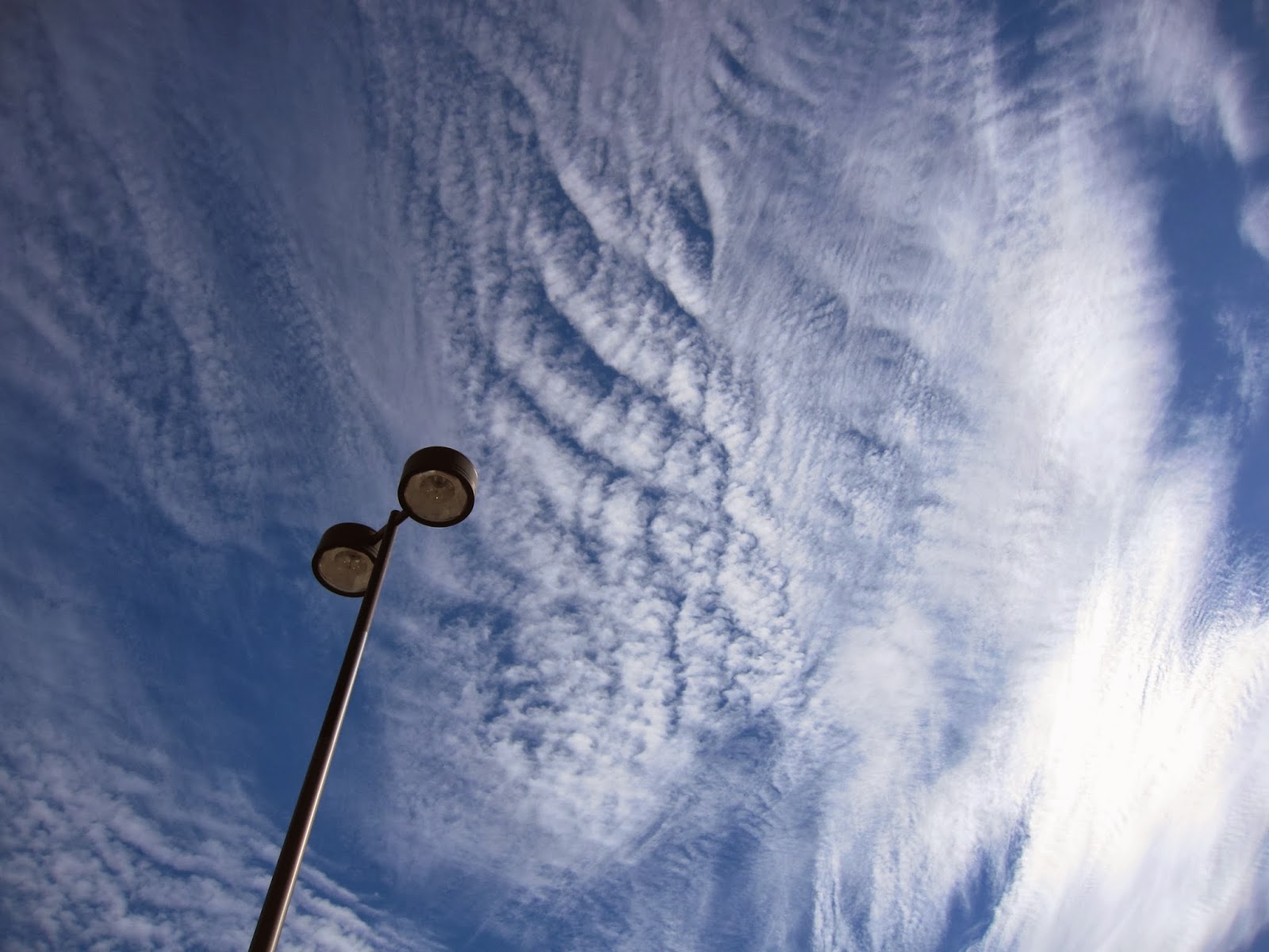 I captured this sky on Veteran's Day when I was at the Botanical Gardens. It made me wonder about what it's like to be a seed-eating bird, how the eyes would always be on the lookout for color. And then I thought, hmmm, I might be a little bit bird. (My father used to say so... he said I ate like a bird. Which of course means I ate A LOT, as some birds eat twice their weight in a day!) Also, birds are constantly popping up in my work. Something about their beauty and freedom and fragility....
