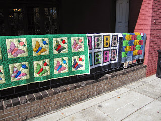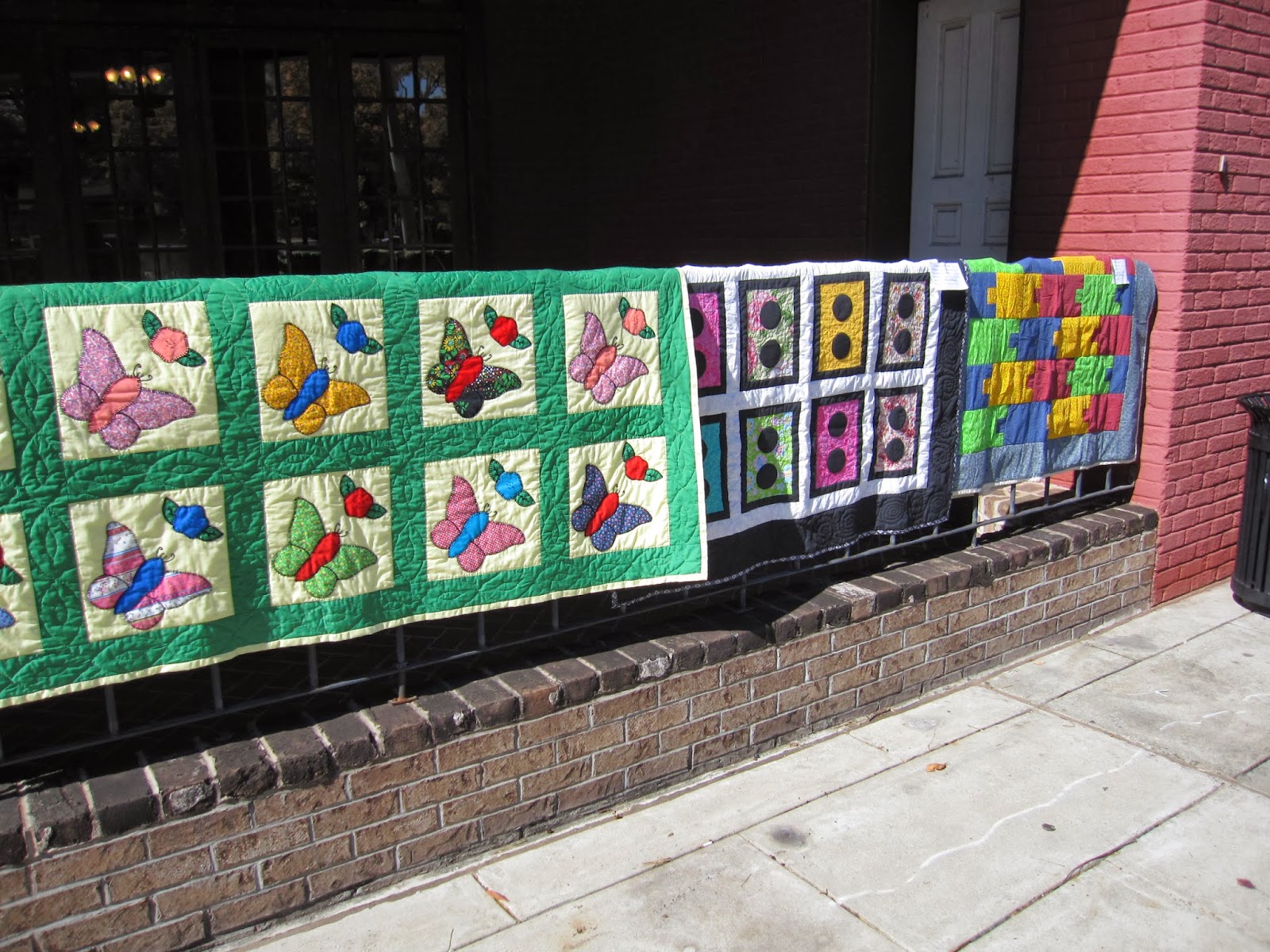 Saturday was a perfect day for quilts! I loved walking around the charming town of Columbiana, Alabama, looking at all the art and color --- and meeting quilters and quilt-lovers at every turn! And yes, I took pictures, so, you too, can enjoy these wonderful works of art: