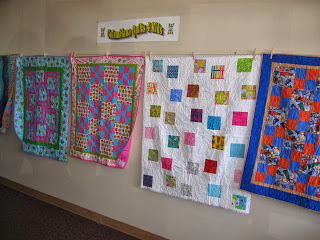 my new treasure: a gift quilted by Sheila with blocks created by kids! Also pictured: Dutcha Lawson, Amazing Library Director! THANK YOU THANK YOU THANK YOU
