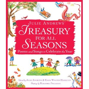 As part of my Cybils panelist responsibilities, I've been reading Julie Andrews' TREASURY FOR ALL SEASONS: Poems and Songs to Celebrate the Year.Generally I am not in favor of "celebrity" books, because they hog the media attention and publisher's marketing dollars, and the masses buy them simply because they're familiar, and the not-yet-famous, perhaps never-to-be-famous have an even more difficult time finding readers for their oh so beautiful books....