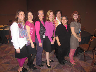 The POETS. Oh my goodness, what a happy day it was to finally meet IN PERSON these people whose work I admire?? While Sylvia Vardell was greatly GREATLY missed, it was all kinds of fabulous meeting panel-mates Amy VanDerwater, Mary Lee Hahn, Janet Wong, Leslea Newman and Laura Purdie Salas. We've need to do it again, gals! And yeah, didn't we work the pink... Publisher's Weekly Children's Bookshelf thought so too!