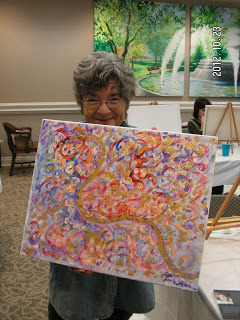 Here's how it worked: attendees, for a fee, were provided with canvas and paints and some initial "inspiration" poems (penned by me!). Then, at the event, I read some poetry along with the talented Boxcar Voices -- while the attendees created their masterpieces!