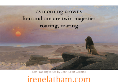 For this week's ArtSpeak: Animals, I've got a lion for you! I love the name of this piece: The Two Majesties by Jean-Leon Gerome so much that I decided to steal "majesties" and put it in my poem!