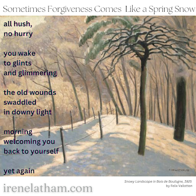 Today's ArtSpeak: Light poem features... snow. And forgiveness, which—whether for others or for ourselves—is rarely an easy thing. But sometimes it just...happens. Like snow. xo