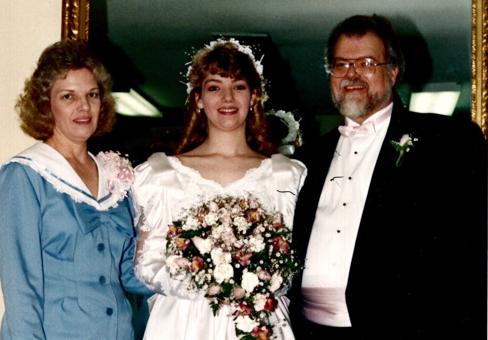 Today I've posted over at Smack Dab in the Middle "On the Importance of Parents in Middle Grade Fiction."In honor of that, I wanted to share a picture (circa 1991, and yes the bride is me!) of my parents, whom I have always considered one of my biggest blessings. I mean, you don't get to choose who you're born to. I was lucky.