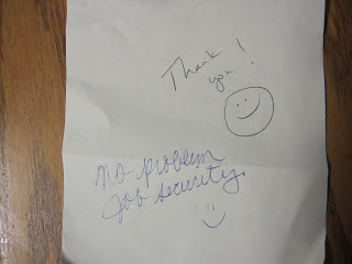 As I was flipping up that red flag, I thought, hmmm, I'm not sure my mail carrier is going to be as happy about all these letters as I am. So I real quick jotted her a note -- "thank you" with a smiley.