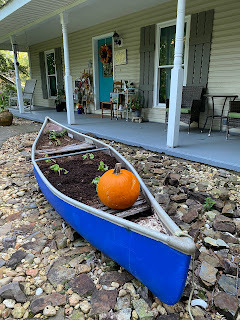Yep, I repurposed a leaky canoe into a raised bed garden! Don't you dig the blue paint? I planted kale for fall, and I kind of love it. :)