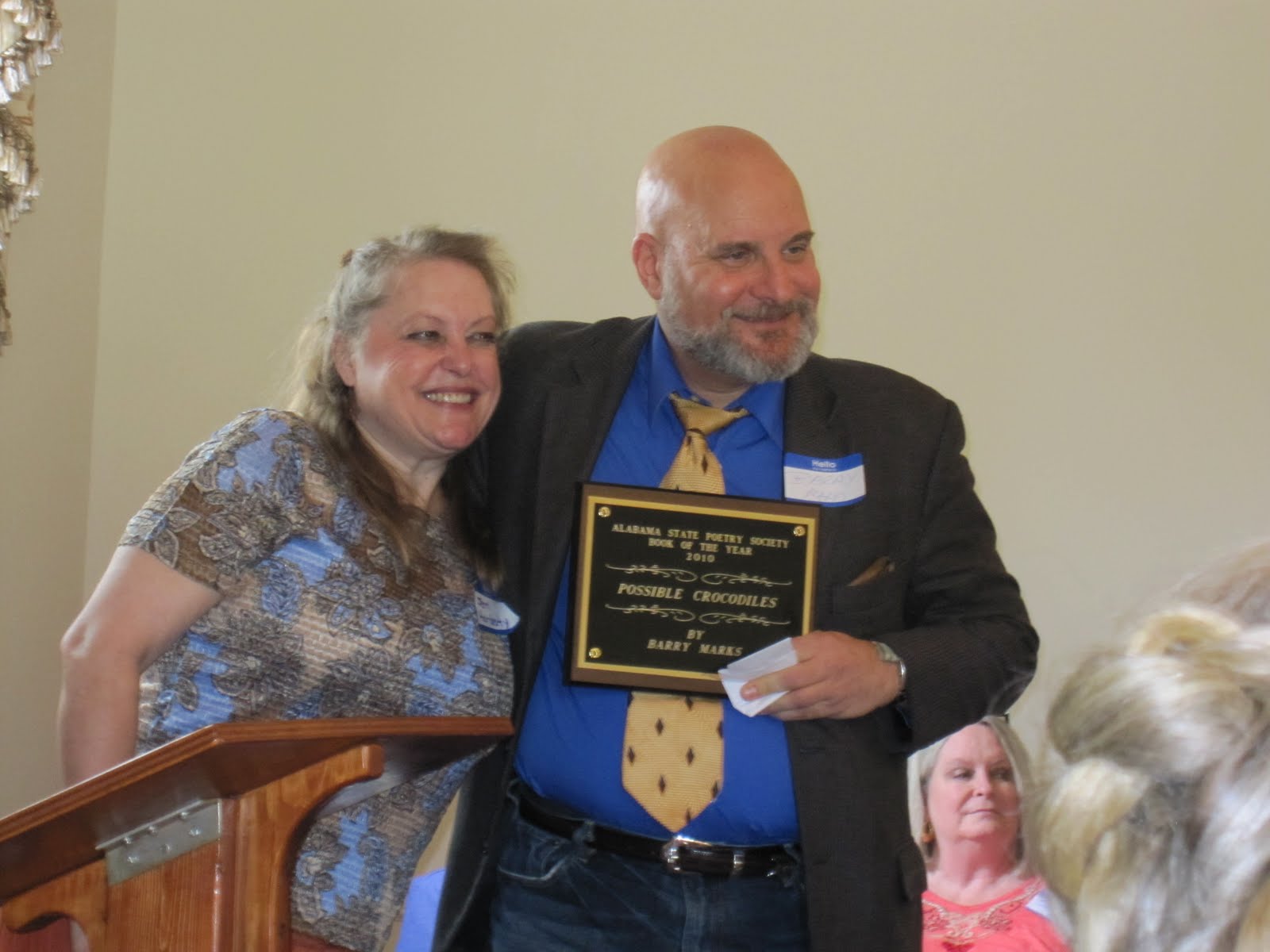 At the luncheon Barry Marks' book POSSIBLE CROCODILES was named BOOK OF THE YEAR and John Chambers was named POET OF THE YEAR. (Yes, in a organization largely populated by women, the guys cleaned up!)