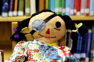 Isn't she gorgeous? And what a surprise!! Librarian Jenny Paynter directed me to the table where I would sign books, and there she was. Jenny said it's an old doll made by her grandmother, and after reading the book, she thought, that's Ludelphia. So she added the eye patch.