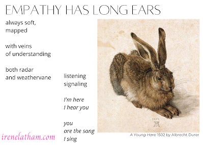 For today's ArtSpeak: Animals poem, I decided to go with a rabbit! (Hoppy Spring!) It took me a while to find the character trait I wanted to use for the metaphor, but when I did, if felt just-right. I love when that happens. :) Thanks so much for reading.