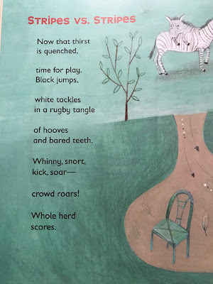 But before we get to that... have you had a chance to read ZOOBILATIONS! by Douglas Florian? It's full of animals and puns and art kids will be able to relate to. There's humor, of course, and some lovely surprises, like "The Dove," which is two lines of wonderment. Get the book and tell me you agree. :)