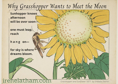 Today's ArtSpeak: Animals poem features a grasshopper! I wrote quite a few drafts for this one, with different angles and ideas... and along the way, I did a little research. One thing I learned is that grasshoppers have existed longer than the dinosaurs! Here are the particulars: