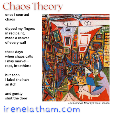 What poetry craft topic would you most like to learn about? Beginning, Endings, and the Magical Middle? 8 Ways to Play with Poetry - structure, form, titles, setting, literary devices, white space? Revision strategies? 8 Ways to Amp Up Your Poem Fast? Crafting the Unexpected Inevitable? Or ??? I welcome your reply in comments or email: irene (at) irenelatham (dot) com. Thank you!! (and yes, I realize the number 8 came up twice there. Ha!)