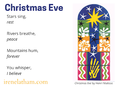 Today marks the last poem of my 2021 ArtSpeak: FOUR SEASONS project. What fun I've had writing through the seasons! I did get a little weary by the end of each season, though... I was ready to move on before the calendar said it was time to do so! (This *might* be a running theme in my life. :) View the entire collection on padlet. And come back next week to see what theme I've chosen for 2022! (I've waffled and waffled, but I think I'm all set now. We'll see!)