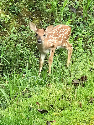 Today's poem was inspired by the many recent deer sitings on our morning walks and early evening drives. So. Many. Deer! Including this little cutie, just hanging out in the ditch.