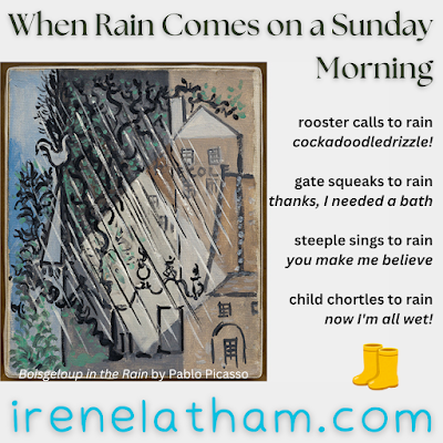 Today's ArtSpeak: PICASSO features a Picasso landscape! I didn't even know Picasso painted landscapes...but yes, yes he did! This one features rain, because when I sat down to write this poem, it was raining, and I thought what fun it would be to write a "rain" poem to the sound of rain on our metal roof! (I was right: it WAS fun!) Thanks so much for reading.