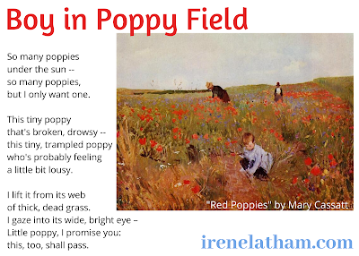 And... DICTIONARY FOR A BETTER WORLD, which I wrote with Charles Waters, illustrations by Mehrdokht Amini, released last month from Lerner has been selected by Naomi Shihab Nye as the Young People's Poet Laureate Book Pick for April. YAY! What an honor... we couldn't be more encouraged, especially during these challenging times.And now for the latest installment of ArtSpeak: RED. Like many of us, I have been compelled to return to old comforts this past week... which led me to write after "Red Poppies" by Mary Cassatt. Enjoy!
