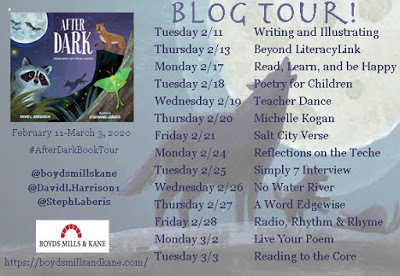 Today it's my pleasure to welcome David L. Harrison, in celebration of his latest book for kids AFTER DARK: Poems About Nocturnal Creatures, illustrations by Stephanie Laberis (Boyds Mills and Kane/WordSong). You may have seen something about this book already as part of the blog tour David and the publisher put together.