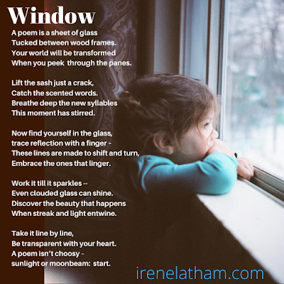 A poem is a sheet of glassTucked between wood frames.Your world will be transformedWhen you peek through the panes.