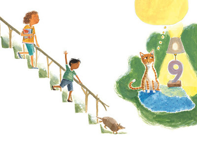 of NonetsAH: Toward the end of 2018, I received a batch of gorgeous poems from Charlesbridge Publishing. Irene’s “nonet” poems. Each one different from the next, but all connected by one thing, a numeral, a digit - the number “nine.” My job as the illustrator was to weave a story through the collection…with pictures. Whaaaat? How was I going to do this? From the poem about a cat’s nine lives, the ninth president, Apollo 9, the Little Rock Nine, to a nine-banded armadillo? Eighteen in all. But ha ha! I love a challenge!