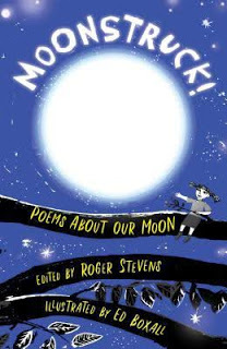 Hello and Happy Poetry Friday! Be sure to visit Catherine at Reading to the Core for Roundup.I've got the moon on my mind -- thanks, in part, to the anthology MOONSTRUCK! Poems About our Moon edited by Roger Stevens, illustrated by Ed Boxall. Lots of gems in this book, and proof of poets' continued fascination with the moon. (A couple of my faves upon this latest reading: "Three Short Poems" by Tony Mitton and "You" by Jay Hulme. Do check this book out!)