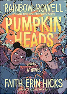 PICK A PUMPKIN by Patricia Toht, illus. by Jarvis, brought to us by Candlewick is one long poem for the wee ones that perfectly captures the experience of visiting a pumpkin patch and choosing just the right one and turning it into a jack-o-lantern. Lovely!... and PUMPKINHEADS by Rainbow Rowell, illus. by Faith Erin Hicks, brought to us by First Second. It's a graphic novel about teens who work at a pumpkin patch. In true Rainbow Rowell style, it's also a sweet love story.