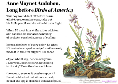 I have deep respect for stepmothers. I am not a stepmother and didn't have a stepmother. But I know stepmothers, and it can be tough! Which is why, some years ago, I wrote this poem about Anne Moynet, who was John James Audubon's stepmother.