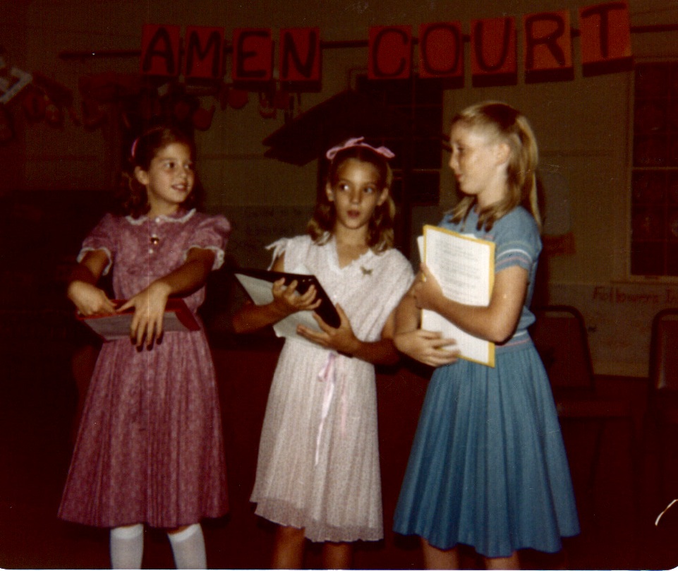 <!-- @page { margin: 0.79in } P { margin-bottom: 0.08in } </style> <br />--> <div style="margin-bottom: 0in;"><div style="margin-bottom: 0.08in;"><div style="margin-bottom: 0.08in;"><div style="margin-bottom: 0.08in;"><div class="separator" style="clear: both; text-align: center;"><a href="https://2.bp.blogspot.com/-S_2UPXv9xc..." imageanchor="1" style="clear: left; float: left; margin-bottom: 1em; margin-right: 1em;"><img border="0" data-original-height="346" data-original-width="231" height="320" src="https://2.bp.blogspot.com/-S_2UPXv9xc..." width="213" /></a></div>For 2019 I'm running a year-long series on my blog in which I share my responses to the writing assignment prompts found in <a href="https://www.amazon.com/Butterfly-Hour... BUTTERLY HOURS by Patty Dann.</a><br /><br /></div><div style="margin-bottom: 0.08in;">I welcome you to join me, if you like! I've divided the prompts by month, and the plan is to respond to 3 (or so) a week. For some of these I may write poems, for others prose. The important thing is to mine my memory. Who knows where this exploration will lead?</div><div style="margin-bottom: 0.08in;"><br /></div><div style="margin-bottom: 0.08in;">In January I wrote about: <i>apron, bar, basketball, bed, bicycle, birthday, boat, broom, button, cake, car.</i></div><div style="margin-bottom: 0.08in;"><i><br /></i></div></div></div><b>Here are February's prompts:</b> <i>chair, chlorine, church, concert, cookbook, couch, dancing, desk, dessert, dining room table, diploma.</i><br /><br /><b>CHURCH</b></div><div style="margin-bottom: 0in;">I grew up in the Episcopal Church, and I have many warm memories related to my experiences at the various churches we attended in all the places we lived. (I have some not-warm memories, too, but today I want to focus on the “good.”) And because this prompt is bringing up so much for me, I've decided to use this space to simply catalog some of the experiences, without going into great detail. My intention is to come back to this post later and expand some of these memories.</div><div style="margin-bottom: 0in;"><br /></div><div style="margin-bottom: 0in;">Interestingly, I recently learned that my mother was a reluctant Episcopalian. She switched to the Episcopal Church upon marrying my father (at his request), and when she spoke of it, it was with some regret and a twinge of anger. This came as a surprise to me, as I'd always imagined religion was more important to my mother than it was it to my father. It shows you, doesn't it, how our childhood assumptions are so often faulty.</div><div style="margin-bottom: 0in;"><br /></div><div style="margin-bottom: 0in;">In Ft. Meade, Florida, I was part of a couple of church musicals – <i><a href="https://www.youtube.com/watch?v=CqWVr... Machine</a></i> and <i><a href="https://www.youtube.com/watch?v=Owr7_... By theCreek Bank</a> </i>being the ones I remember best. It was my first taste of musical theater, which has been a lifelong love. I can still remember many of those songs by heart!</div><div style="margin-bottom: 0in;"><br /></div><div style="margin-bottom: 0in;"><table cellpadding="0" cellspacing="0" class="tr-caption-container" style="float: right; margin-left: 1em; text-align: right;"><tbody><tr><td style="text-align: center;"><a href="https://3.bp.blogspot.com/-1U-znaDm_t..." imageanchor="1" style="clear: right; margin-bottom: 1em; margin-left: auto; margin-right: auto;"><img border="0" data-original-height="809" data-original-width="961" height="269" src="https://3.bp.blogspot.com/-1U-znaDm_t..." width="320" /></a></td></tr><tr><td class="tr-caption" style="text-align: center;">Erin, Irene, Kim<br />Christ Episcopal Church<br />early '80s</td></tr></tbody></table>At Christ Episcopal Church in Covington, Louisiana, I sang in the choir and participated in the youth group. I had my first crush and broke my arm in the church parking lot. I was the first girl acolyte. One year we buried a time capsule, but by the time it came to unearth the capsule (which was such a great idea!), our family had already moved to another place. </div><div style="margin-bottom: 0in;"><br /></div><div style="margin-bottom: 0in;">While I was in high school, we attended Holy Cross Episcopal Church in Trussville, Alabama. That's where I got my first taste of public speaking – on the topic of “Faith” at <i><a href="http://www.happeningnational.org/abou..., a teen weekend retreat. </div><div style="margin-bottom: 0in;"><br /></div><div style="margin-bottom: 0in;">Throughout my childhood my most cherished friend-groups came from my churches, not my schools. At Holy Cross it seemed to me we were a group of misfit kids from Irondale and Pinson and Roebuck and Trussville... and somehow we all fit in at our church group. It helped that we had devoted, inspiring youth leaders – 2 couples: Mary and Murray and Karen and Roger. We rode in Mary and Murray's “Blue Goose” to <a href="https://campmcdowell.com/">Camp McDowell</a>, which remains a favorite spot of mine to this day. </div><div style="margin-bottom: 0in;"><br /></div><div style="margin-bottom: 0in;">At Halloween we got in lots of trouble for attending a <a href="http://judgementhouse.org/">J... House</a> at a Baptist church (instead of a regular haunted house, which had been the plan). This was a big deal because Baptists and Episcopalians disagree on their beliefs about hell and salvation, and some parents didn't want their kids exposed to those other ideas. To us, it was just entertainment. We loved being with one another. I'm so so grateful especially to Jennifer, Jeff, James, Anthony, Bucky, Tommy... and to my siblings Lynn and MicaJon, too. I'm not sure how I would have gotten through those years without the love and support from all of you.</div><br />