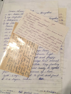 <!-- @page { margin: 0.79in } P { margin-bottom: 0.08in } </style> </div>--> <div style="margin-bottom: 0in;">Grandma Dykes was famous for her cakes – and for all her cooking. She was one of those brides who didn't know how to cook AT ALL when she got married, but boy did she master the skills over the course of her lifetime! It helps that she really enjoyed cooking, and nothing pleased her more than feeding <i>us</i>, her most beloved. By “us,” I mean my granddaddy, my father (their only child), and me and my siblings.</div><div style="margin-bottom: 0in;"><br /></div><div style="margin-bottom: 0in;"><table cellpadding="0" cellspacing="0" class="tr-caption-container" style="float: left; text-align: left;"><tbody><tr><td style="text-align: center;"><a href="https://4.bp.blogspot.com/-n91J6Jv77r..." imageanchor="1" style="clear: left; margin-bottom: 1em; margin-left: auto; margin-right: auto;"><img border="0" data-original-height="1600" data-original-width="1210" height="320" src="https://4.bp.blogspot.com/-n91J6Jv77r..." width="241" /></a></td></tr><tr><td class="tr-caption" style="text-align: center;">some of Grandma's recipes<br />(in her handwriting)</td></tr></tbody></table>Each year for Christmas she would make a four layer <a href="https://www.foodnetwork.com/recipes/p... cake </a>that she iced with butter pecan frosting and wrapped in foil and froze... before sending it in the mail from her home in Port St. Joe, Florida, to us in Louisiana or Alabama, or wherever we were living at the time. On the day the cake arrived, we'd marvel at how it was still cold! Then my mom would proceed to peel away the foil and place it on a cake plate.</div><div style="margin-bottom: 0in;"><br /></div><div style="margin-bottom: 0in;">Grandma Dykes also made a <a href="https://www.foodnetwork.com/recipes/p... cream pound cake</a> (always in a tube pan) that was the perfect blend of crisp on the outside and moist and dense on the inside... I've used her recipe for years and even gave it to Mrs. Nelson in my book LEAVING GEE'S BEND.</div><div style="margin-bottom: 0in;"><br /></div><div style="margin-bottom: 0in;">Another favorite was <a href="https://www.coca-colacompany.com/stor... cake</a> – a chocolatey, moist, pecan creation which she made because my mother (her daughter-in-law) loved it. We all loved it! And now <i>I</i>make this cake for my mother.</div><div style="margin-bottom: 0in;"><br /></div><div style="margin-bottom: 0in;"><table cellpadding="0" cellspacing="0" class="tr-caption-container" style="float: right; margin-left: 1em; text-align: right;"><tbody><tr><td style="text-align: center;"><a href="https://2.bp.blogspot.com/-Nxmvjz-E4Y..." imageanchor="1" style="clear: right; margin-bottom: 1em; margin-left: auto; margin-right: auto;"><img border="0" data-original-height="1600" data-original-width="1200" height="320" src="https://2.bp.blogspot.com/-Nxmvjz-E4Y..." width="240" /></a></td></tr><tr><td class="tr-caption" style="text-align: center;">Grandma Dykes' cake keeper</td></tr></tbody></table>When Grandma Dykes died, my father's wife (not my mother) gave me the cake keeper that Grandma always used and kept stored on top of the refrigerator whenever it was empty of cake. It was round and aluminum, with the word “cake” printed on the side – exactly the kind of thing you'd expect to find at a grandmother's house! As much as I wanted to keep it, I knew it belonged to my sister Lynn, who is named for Grandma Dykes. Now, when I visit my sister in her home, I love seeing that cake keeper perched on top of her china cabinet, like it was meant to be there all along.</div><b></b>