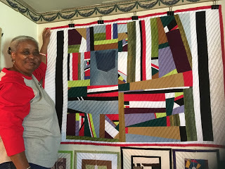 Mary Ann Pettway with my (!) quilt,just before taking it off the wall