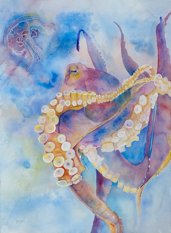 Barbara Bell is an artist with a studio in Rockvillle, Maryland. She's always been a big fan of sea critters, especially of the cephalopod variety. She painted this piece after a visit in 2015 to the Waikiki Aquarium in Honolulu. I am in love! You can also view the painting in the "Sea" section of her website, www.bellslessons.com.