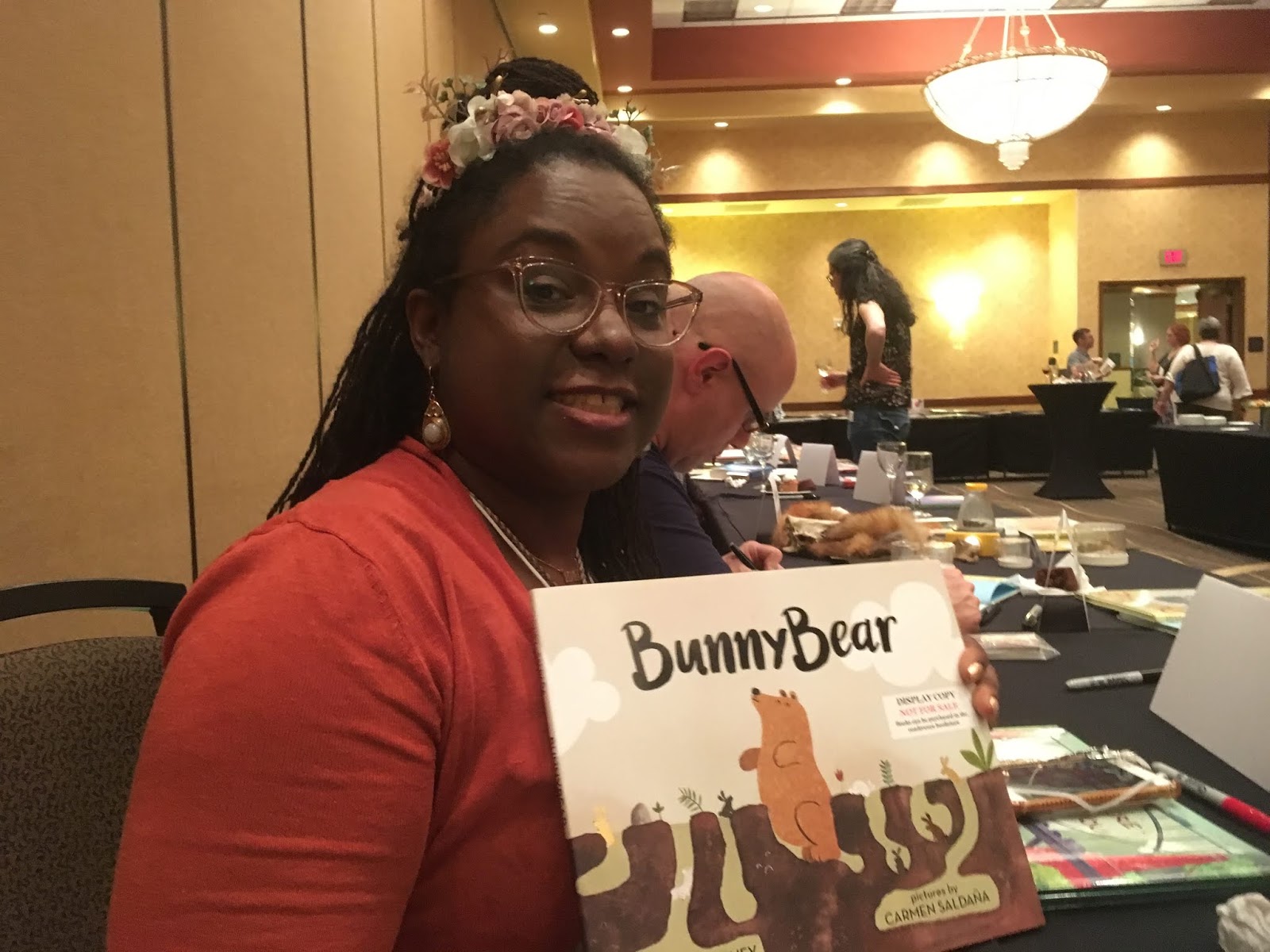 AND... I loved sitting next to Andrea Loney, author of BUNNY BEAR, which is about being yourself, and TAKE A PICTURE OF ME, JAMES VANDERZEE!, one of the Harlem Renaissance artists I wrote poems about during 2018 ArtSpeak! In her later keynote Andrea told us about how working at the circus and Disney (and improv comedy!) impacted her life and writing. Fun!