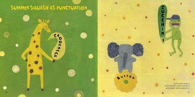 I myself have written about punctuation a number of times. The shortest -- and strangest -- appears in FRESH DELICIOUS, where there's a "Summer Squash as Punctuation" spread. The visual interpretation is a little different than a traditional poem: