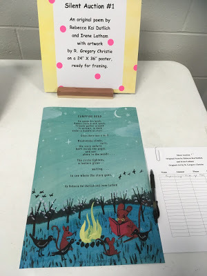 Rebecca Kai Dotlich. It was Rebecca who was there when I had my awakening to children's poetry back in 2010. It was Rebecca with whom I wrote a poem that was printed on a poster for this event -- and illustrated by R. Gregory Christie! - before being auctioned off. We were able to read the poem aloud, and also take home posters of the poem. What fun!