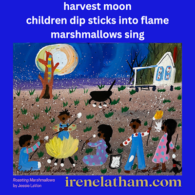 3. Today's ArtSpeak: FOLK ART poem S (it's a 2-fer Friday the 13th!) feature a Harvest Moon (coming September 17!) and children roasting marshmallows. The artist is Jessie LaVon. Thanks so much for reading!