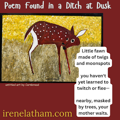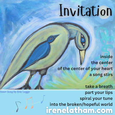 I started out with no title, ala Emily Dickinson, jumping straight into the poem... and then I titled it "Invitation." I have quite a few "Invitation" poems! And of course the mind goes straight to this one by Shel Silverstein. Aren't ALL poems invitations, whether they bear that title or not?