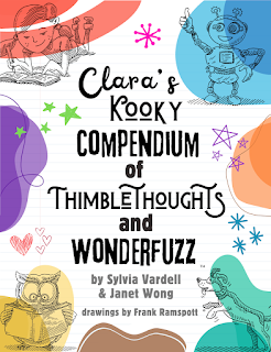 I'm also delighted to have a couple of poems in the just-released anthology from Janet Wong & Sylvia Vardell: Clara's Kooky Compendium of Thimblethoughts and Wonderfuzz, drawing by Frank Ramspott, pubbed by Pomelo Books. I love those made-up words, and I loved writing for this project! Find out more and get your copy here. Fun fact: I've been given a number of alternate names over the years. My father called me Harriet. My brothers called my Reniebob. A friend dubbed me Lydia. Another friend said she swore I was a Clara in a former life. So I have great fondness for the name! And even though I haven't seen this book yet in person, I already love it!