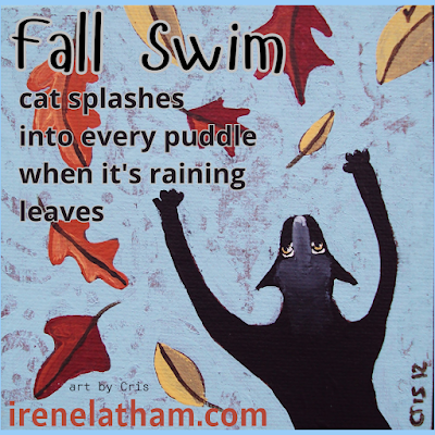 In reading news, I just finished ONE BIG OPEN SKY by Lesa Cline-Ransome. If you were a Little House on the Prairie kid (like me!) and also loved PRAIRIE LOTUS by Linda Sue Park (also me!), you will enjoy this prairie tale from the Black perspective. It's written in verse...with no punctuation. Big open sky, indeed! And there are three narrators—one child, Lettie; Lettie's mother Sylvia; and Philomena, a young (feminist) teacher. I don't think I've ever before read a "go West" story that mentioned women's suffrage. I hope you'll give the book a whirl!This week's ArtSpeak: FOLK ART poem features falling leaves... and a cat! Enjoy!