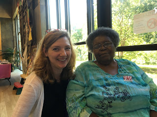 The workshop was conducted by Tinnie and Minnie Pettway (sisters!) of That's Sew Gee's Bend, who helped us make potholders in the Gee's Bend style. Tinnie was the very first quilter I got to know in Gee's Bend, so it was a great pleasure to see her again.