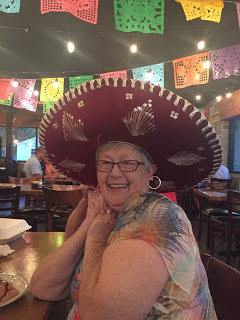 One of the things I have loved about our move to the lake has been getting involved with the Lady Lakers. In anticipation of the community work we'll be doing this fall, the group decided to focus on "fun" for the summer. We started with an outing to Two Amigos in Oneonta, where, among other things, I got to know my tablemates a bit better, and Carolyn got to don the sombrero in celebration of her (85th) birthday! Thanks to Connie for sharing the pics.