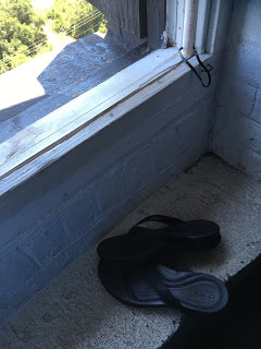 view of my flip-flops on windowledge -- visitors are required to