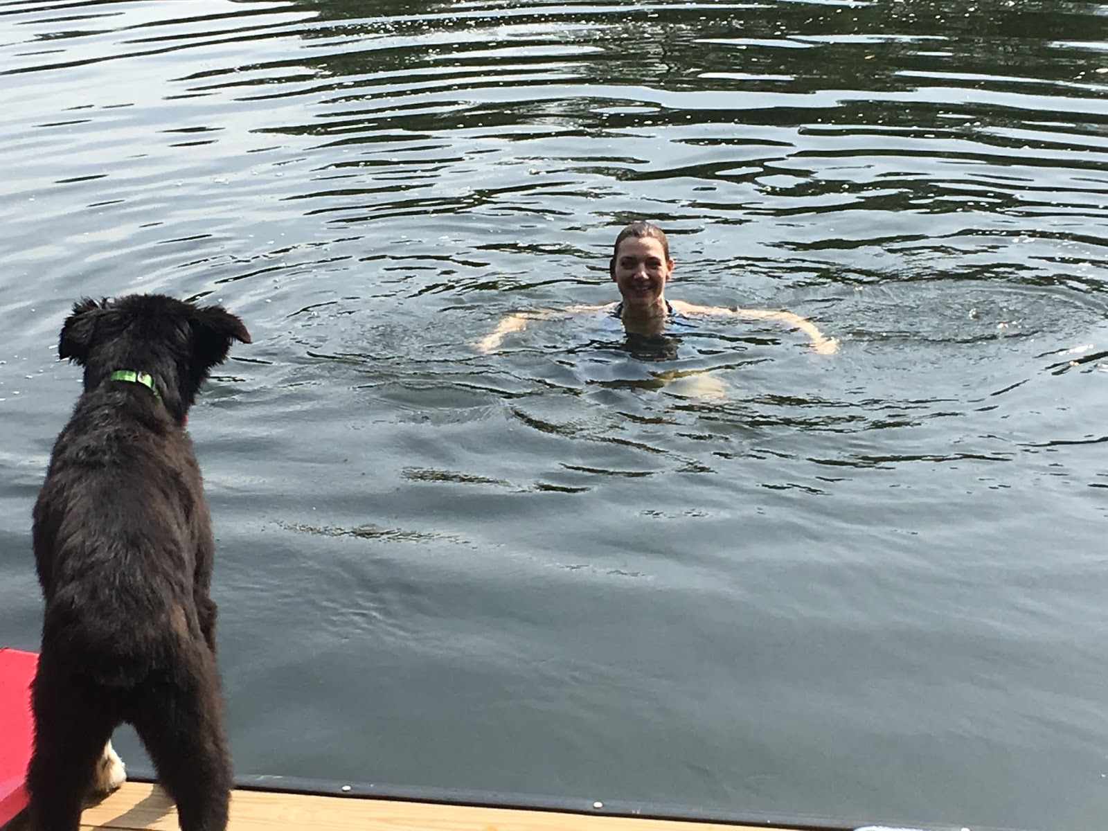 1. Swimming, with dog Ruby looking on... she hasn't been brave enough yet to jump in. Maybe today?