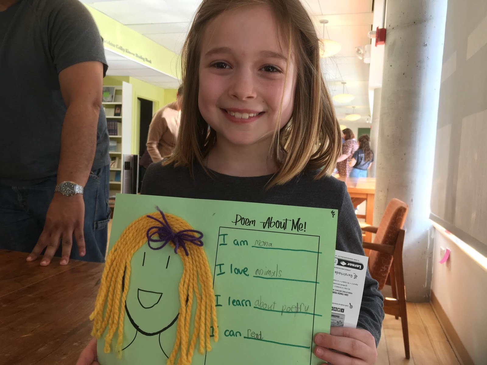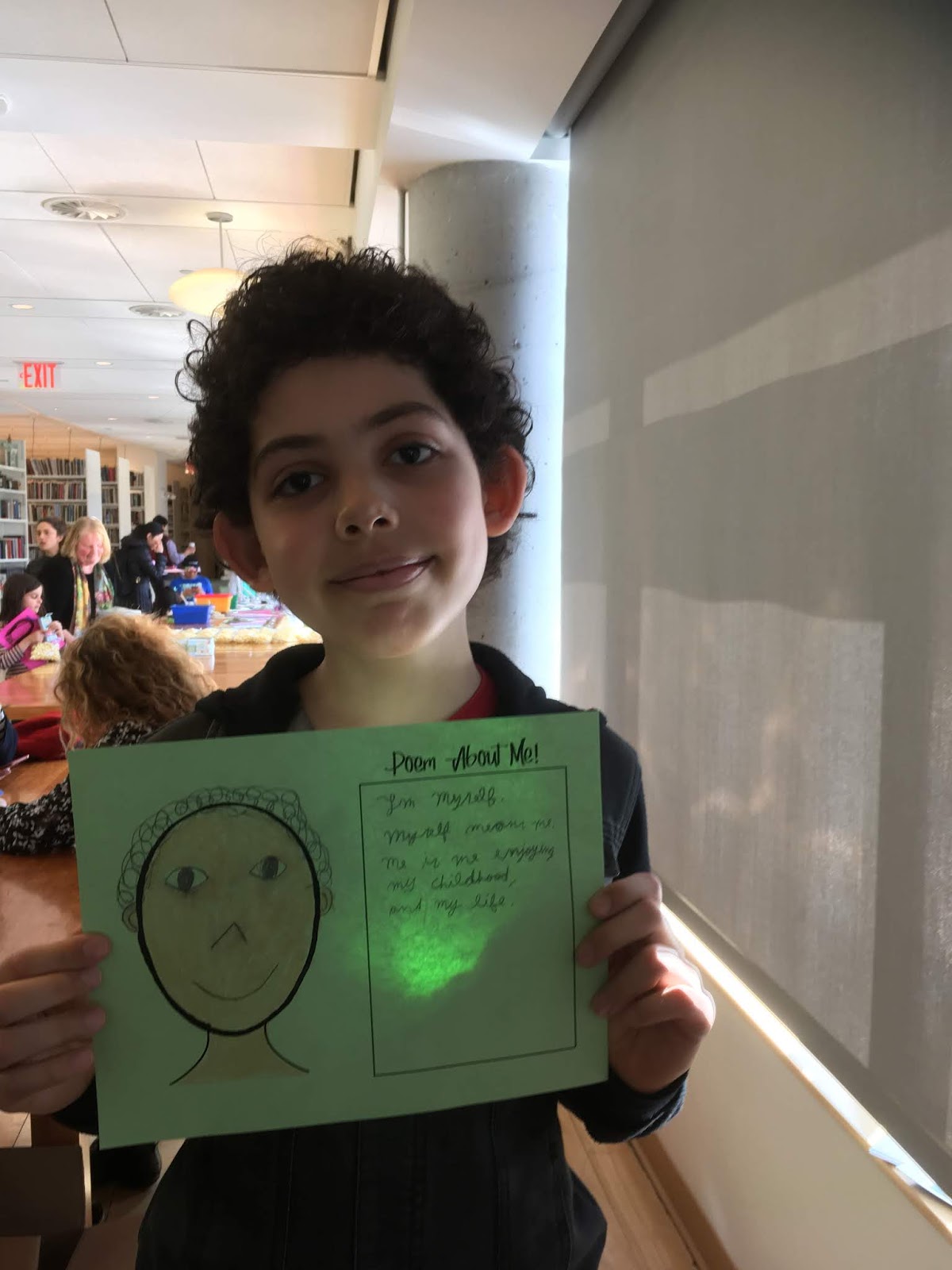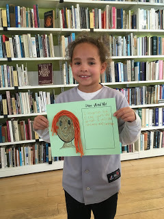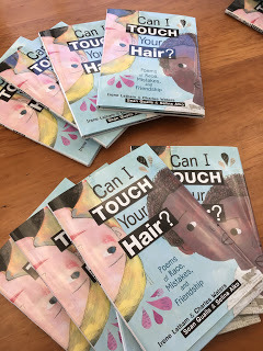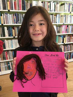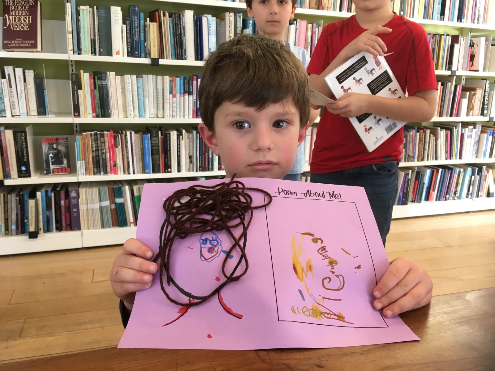 It's a beautiful building near Battery Park with all sorts of poetry memorabilia... and of course the 70,000 volume collection of poetry books. :)We presented on CAN I TOUCH YOUR HAIR?, and the amazing staff put together a "hair" craft, much like Sean and Selina's craft for PEN World Voice, though there was no prior discussion about it, so it was just a happy coincidence. The kids really seemed to enjoy it! We loved taking