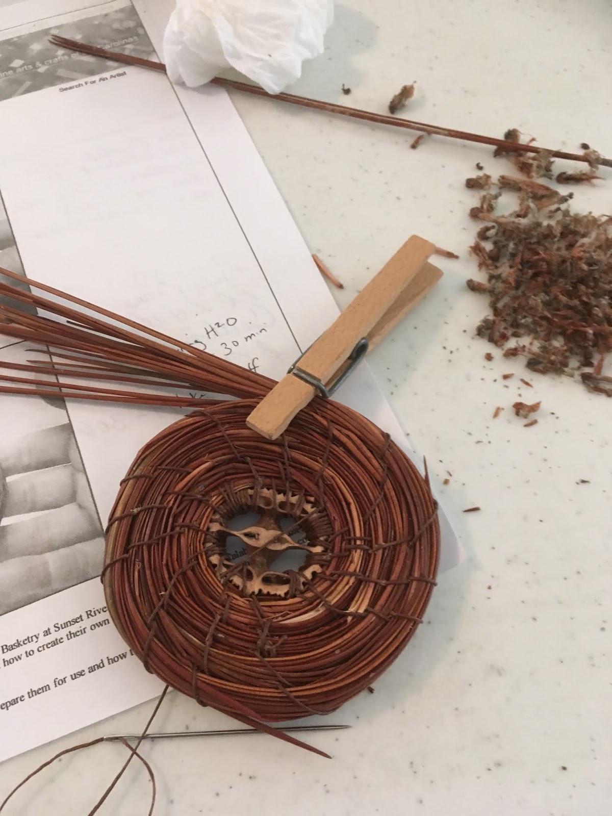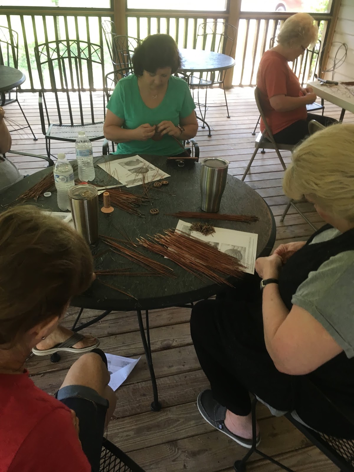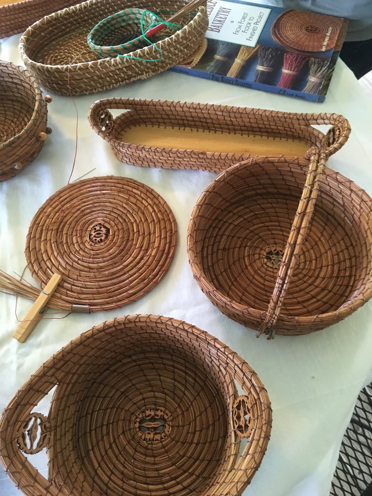 This past weekend we all gathered to learn how to weave pine needle baskets.