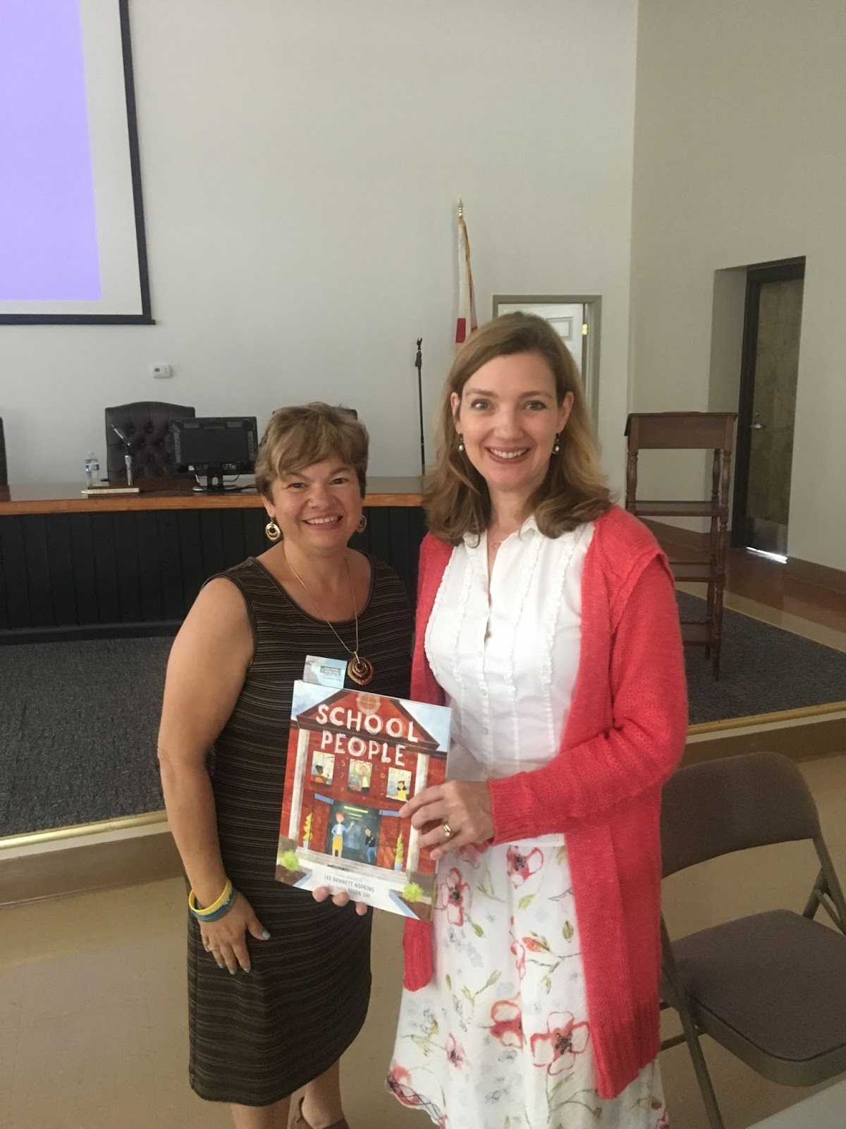 Lori Brown and Irene Latham(with gift-copy of SCHOOL PEOPLE)