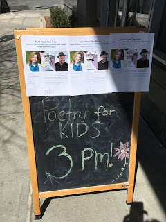 craft station!pics of the kids with their happy creations (see below). We also read poems from the book and answered a few questions from the audience. It was fun to give shout-outs to our editor Carol Hinz and one of the illustrators Selina Alko, who were in the audience.Also in the audience were three of my guys, though two of them were sick! You can probably tell which ones from the picture. :)