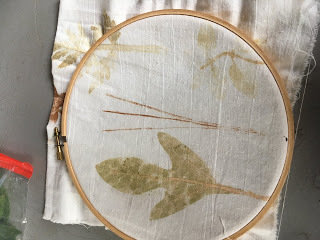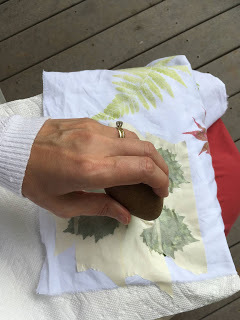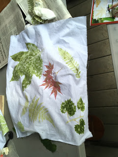 my practice pieceI wasn't expecting to enjoy the process so much, but something about the repetitive movement and the physicality of pounding those leaves was relaxing and meditative to me. I loved my results and can't wait to try some on my own! I really want to try transferring some designs to men's handkerchiefs -- because my father always carried a handkerchief, and aren't they the perfect size? I *might* even quilt them. We'll see!