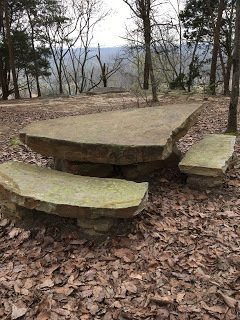 stone picnic table at Palisades Park -someone had to build it!And I thought I *might* want to include something about the Sphinx, which I have seen with my own two eyes! (Side note: both my parents have said that the one place they would return to from all our worldwide travels is Egypt. Interesting...) Other things that came to mind: my grandparents, who built their home themselves, brick by brick; the show "Bob the Builder," which my middle son loved!; the crew who recently built our stairs and boat dock; and Palisades Park in Oneonta, Alabama, where builders created picnic tables out of stone slabs!