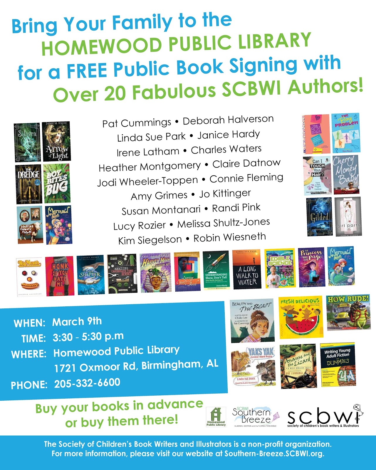 March 9, Homewood Library (Homewood, AL), 3:30-5:30 Meet amazing authors! Be inspired!