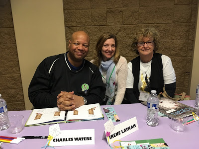 Charles Waters, Irene Latham, Pat(ty Jean) WeaverNext up was the SCBWI Writing and Illustrating for Kids conference. Many thanks to the slew of volunteers who made it happen! It started with a signing during which Charles and I were able to present a little about the book -- after which, the bookseller apologetically announced he'd sold out of our books! A good problem to have, right? Also: Linda Sue Park bought our book!!!! Amazing, right? :) We also got a pic of me, Charles, and the real-life Patty Jean (who appears in the book!). Fun. I'm so grateful to friends who came out to support us... a thousand thank yous!!